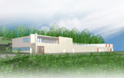 the front facade cuts into the soil. The route to the cellar