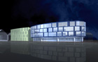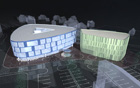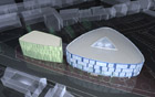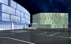 volumen z lokali v pritličju in pisarnami v nadstropju je