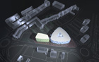organiziran okrog notranjega atrija, ki ga križajo povezovalni