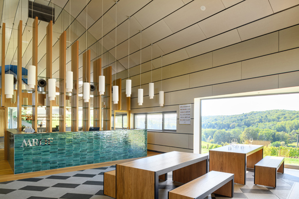 okolje vinogradov, je umeščen nov servirni pult, obdan s steklenimi