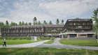 velikega volumna hotela v prostoru s premišljeno zasaditvijo,
