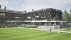Obstoječi in novi objekt se oblikovno poenoti v eno celoto.