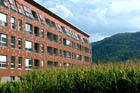 zahodna fasada je orientirana na polja hmeja. Z lomom volumna