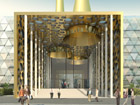Igra svetlobe spremlja uporabnika na poti skozi avlo. Nad