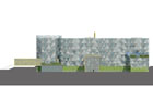 je obsegal zasnovo fasade, vhodne avle ter zunanje ureditve